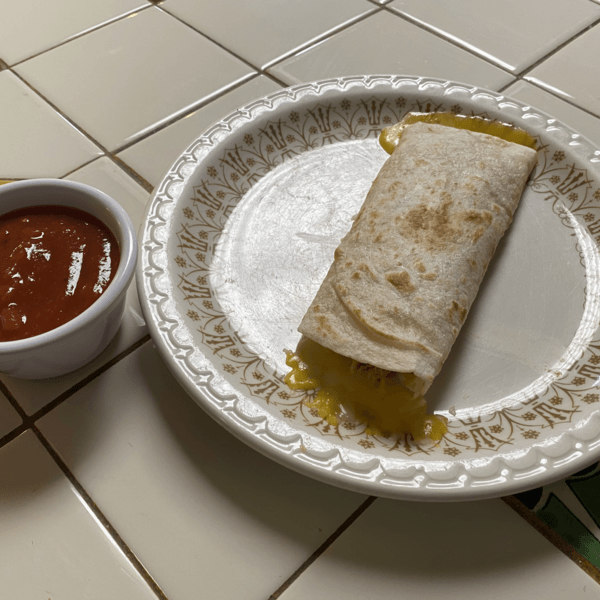 Our Sirloin Burrito comes filled with shredded Sirloin Roast and may be made a dinner with the addition of rice and/or beans for $4.00! All Burritos include cheese and onion.